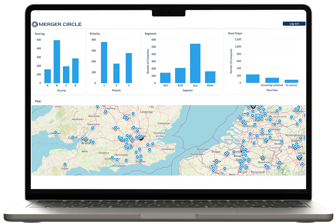 Merger Circle is an advisory firm specialized in external growth strategies, with expertise in Data Science, M&A and proprietary tools. We help clients stay confidently focused on the right targets, generate more proprietary deals and make informed decisions on every investment opportunity.